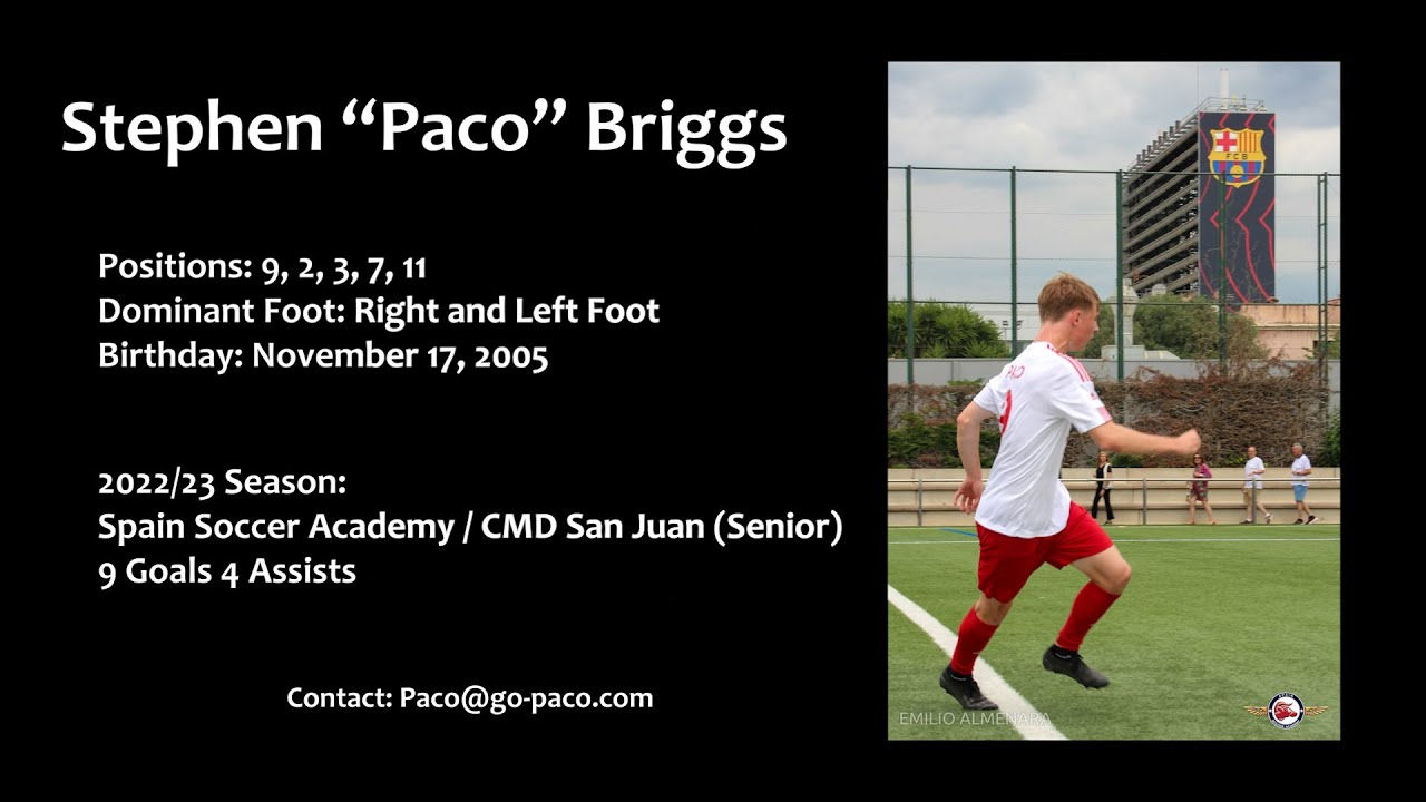 US national Stephen “Paco” Briggs is a young aspiring player with Bellavista U.D. in Seville, Spain. Stephen’s versatile skills have allowed him to play as a forward, left and right wing as well as in back positions throughout 10-year development path. Stephen is ambidextrous, able to use both left and right foot equally well.